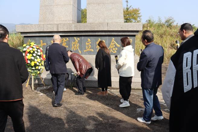 11月16日,jinnianhui金年会诚信至上学生党支部组织党员和入党积极分子代表赴通山县大畈镇瞻仰红十七军成立纪念碑,开展“感悟革命情怀、传承红色精神”主题党日活动。