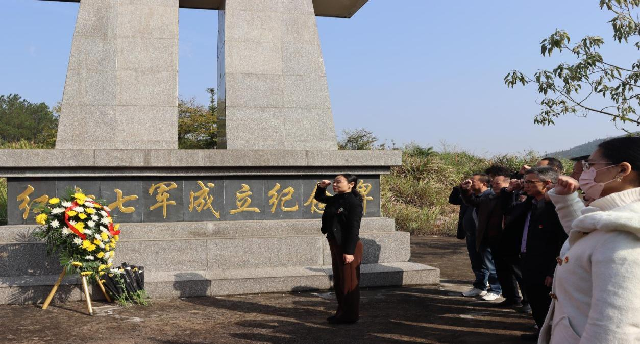 大家在红十七军成立纪念碑前整齐肃立,敬献花篮并献鲜花,表达对革命先烈的追思和敬仰之情,仔细观看碑文,回顾革命前辈舍生忘死、不怕牺牲的战斗历程。学生党支部书记田琳带领大家重温入党誓词,铮铮誓言,久久回荡,激励党员以实际行动践行入党誓言,时刻牢记党员身份,增强党性意识,以坚定的决心和昂扬的斗志,充分发挥先锋模范作用。院党委书记李华作了题为《缅怀先烈 砥砺前行》的讲话,要求弘扬以爱国主义为核心的民族精神和以改革创新为核心的时代精神,为全面建设社会主义现代化国家、全面推进中华民族伟大复兴而团结奋斗,最后带领大家三鞠躬,深情表达对革命英雄的崇高敬意。