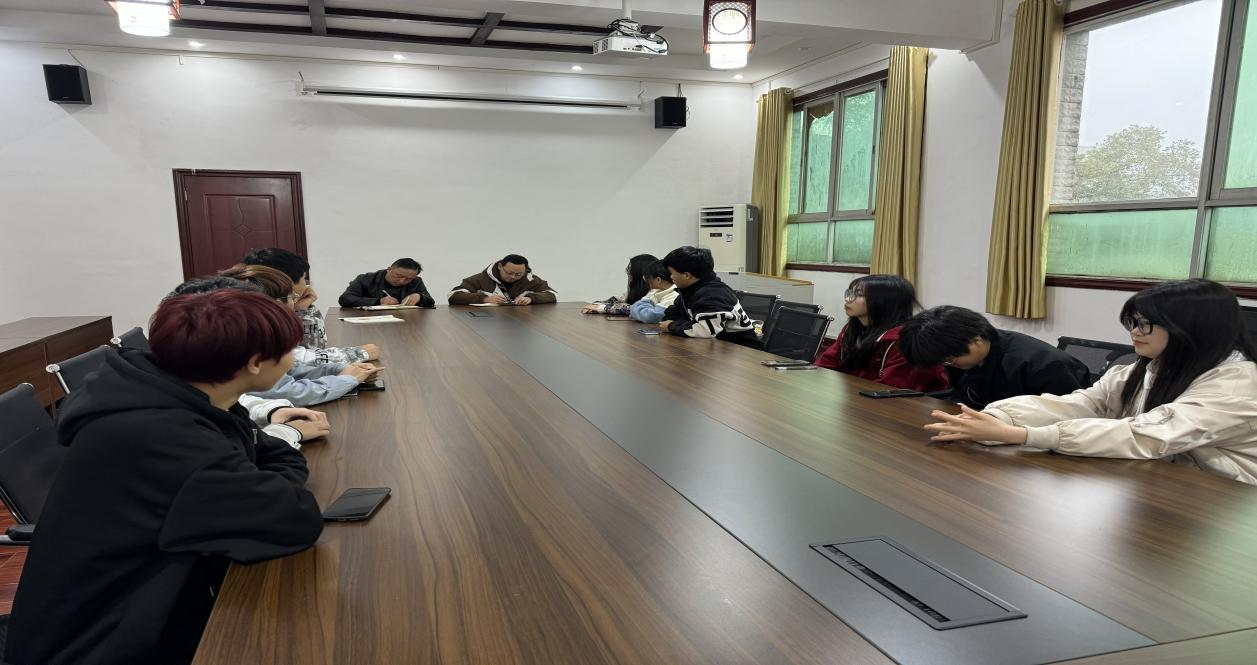 徐家柏同志在教八会议室,与各年级各专业的班委一起就“奋斗赢得未来”为主题,与班干部交谈。