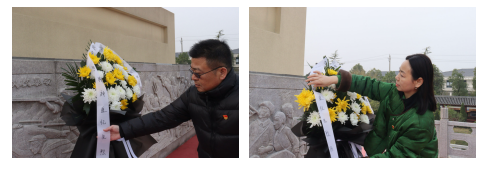 紧接着,党员老师整理着纪念碑前的缎带,每一个动作都透露出对历史的尊重和对和平的珍视。