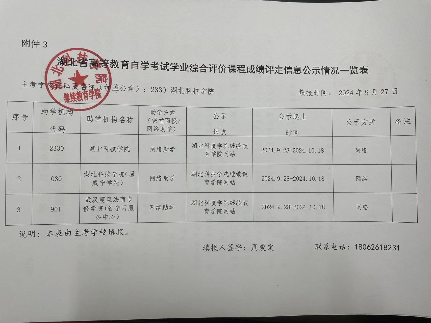 学业综合评价2024年10月份成绩公示