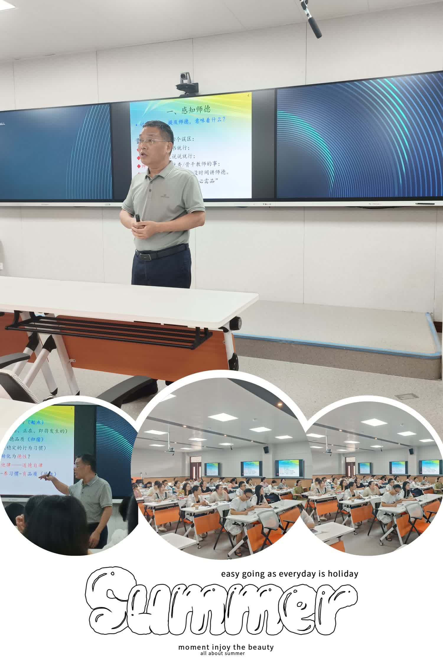 邹教授从感知师德、理解师德和培养师德等三个维度进行讲解。他首先以关键词为切入点,层层递进,从字面到深层含义,从古人言语到当代楷模,让我们感知师德;然后从多个方面,向我们解释什么是师德;最后以德行向德性的转换为方向,向我们分享如何培养师德。