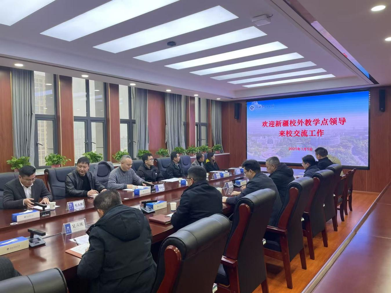 3月5日下午,新疆教学点负责人刘德义率队来我校交流学习,旨在进一步深化双方在继续教育领域的合作。此次活动由jinnianhui金年会诚信至上党委书记金延安主持,院党委第一书记樊熙、院长厉阳春、副院长吴六庆、陆佳军及相关工作人员接待新疆教学点团队。