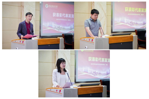 获表彰代表袁青松、范献华、李淼依次发言,分享了团队的成功经验,强调了团队协作、精准宣传、优质服务在招生工作中的关键作用,以及招生工作中的点滴故事和心得体会。他们表示,将以此次表彰为新的起点,不断探索创新,为学校吸引更多优秀生源,为高等学历继续教育事业的发展贡献更大的力量。