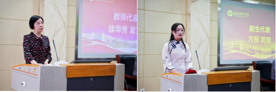 教师代表徐华秀分享了丰富的教学经验,鼓励新生积极主动学习,掌握科学的学习方法,勇于面对学习中的困难和挑战,与教师保持良好沟通,共同进步。新生代表方丽表达了对学校的感激和对未来学习生活的期待,分享了自己选择继续教育的初衷和学习目标,表示将以饱满的热情和坚定的信念投入到学习中,不辜负学校和老师的期望。